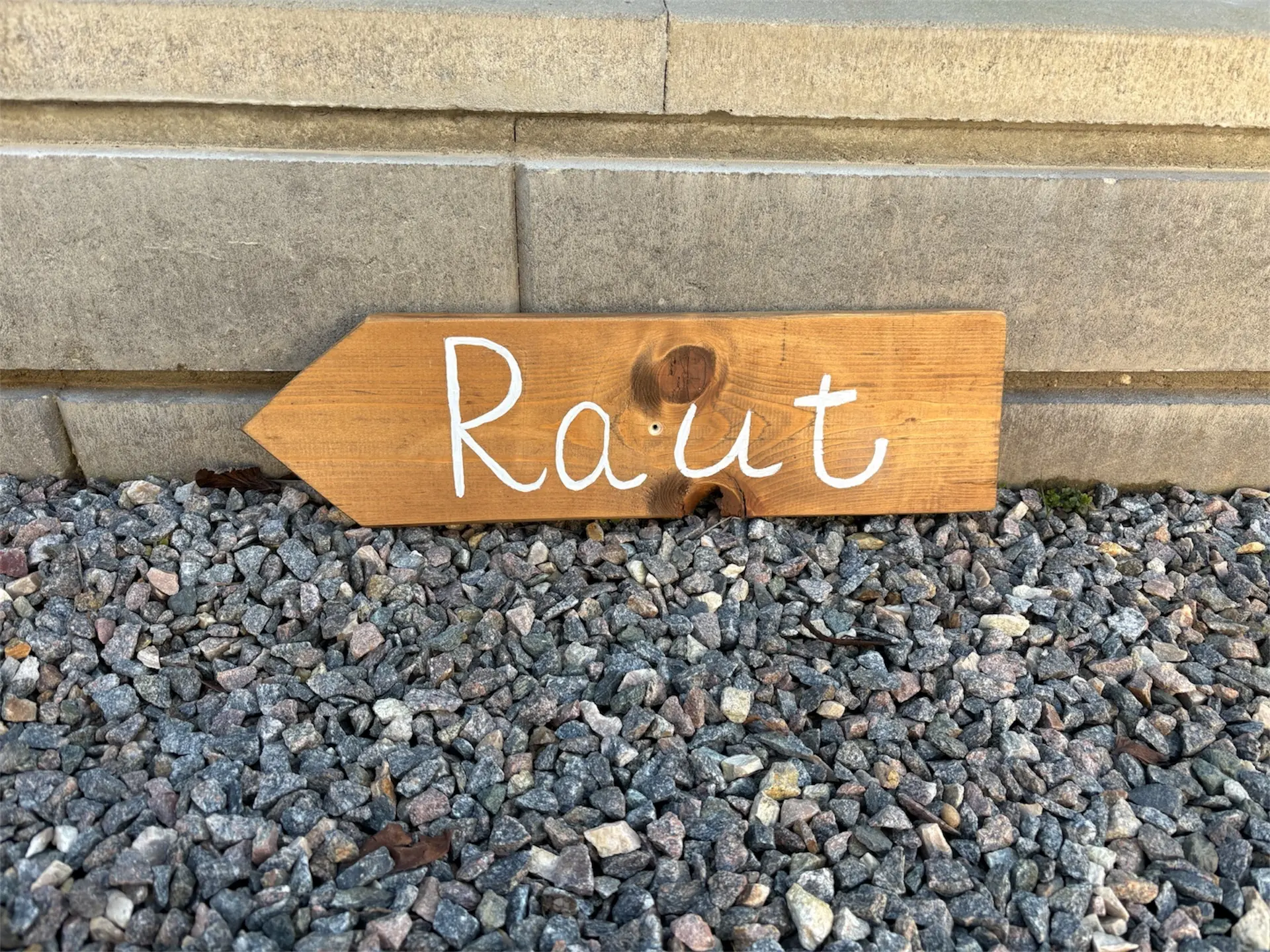 Stylová dřevěná směrovka s nápisem „raut“ je praktickým a zároveň dekorativním prvkem každé svatby. Pomůže hostům snadno se zorientovat a zároveň krásně doplní celkovou atmosféru svatebního dne.