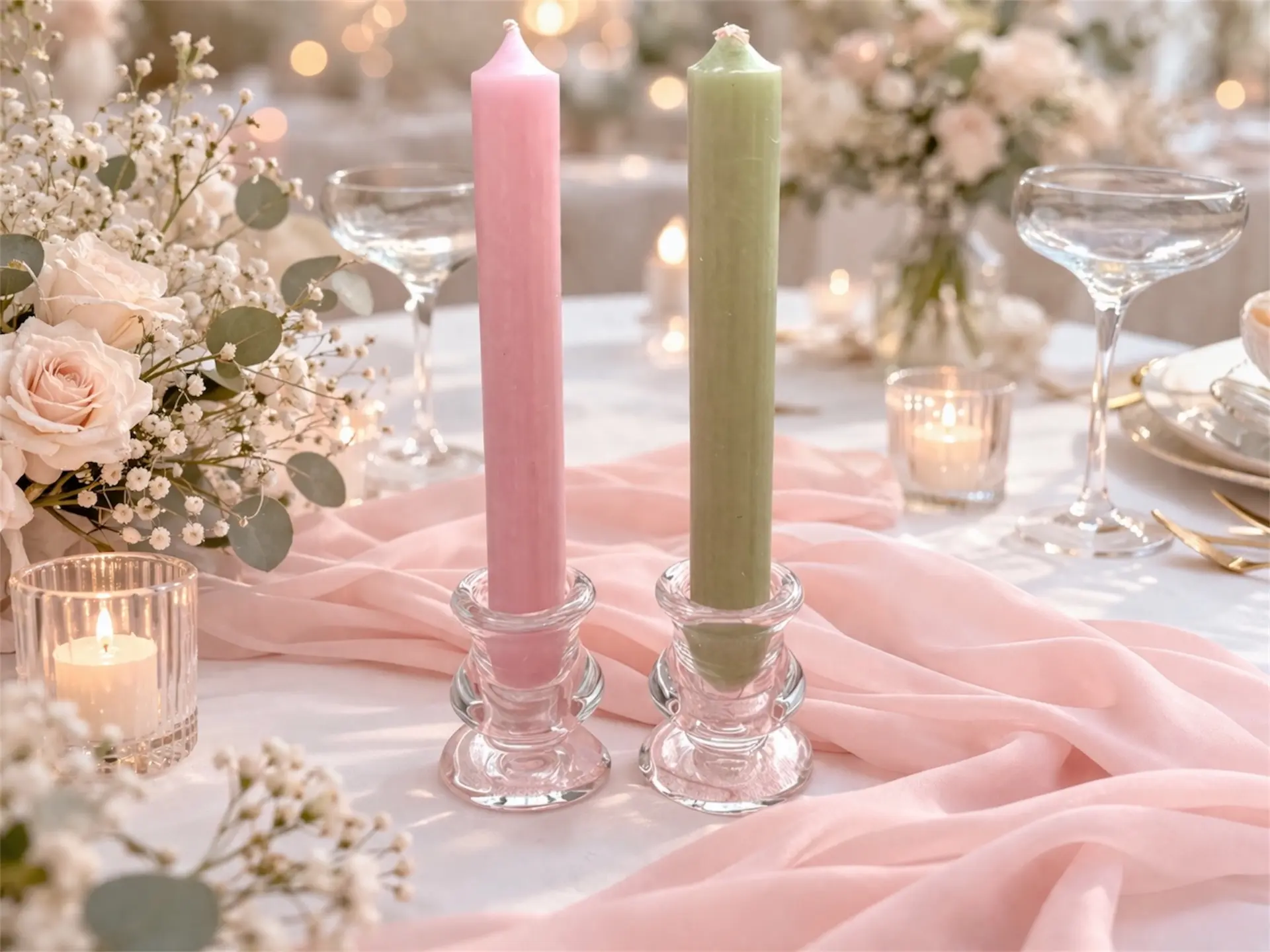 Skleněný svícen krásně vynikne na slavnostní tabuli, sweet baru i při dekoraci obřadního místa. Sklo jemně odráží světlo svíček a vytváří romantickou atmosféru plnou tepla a elegance.